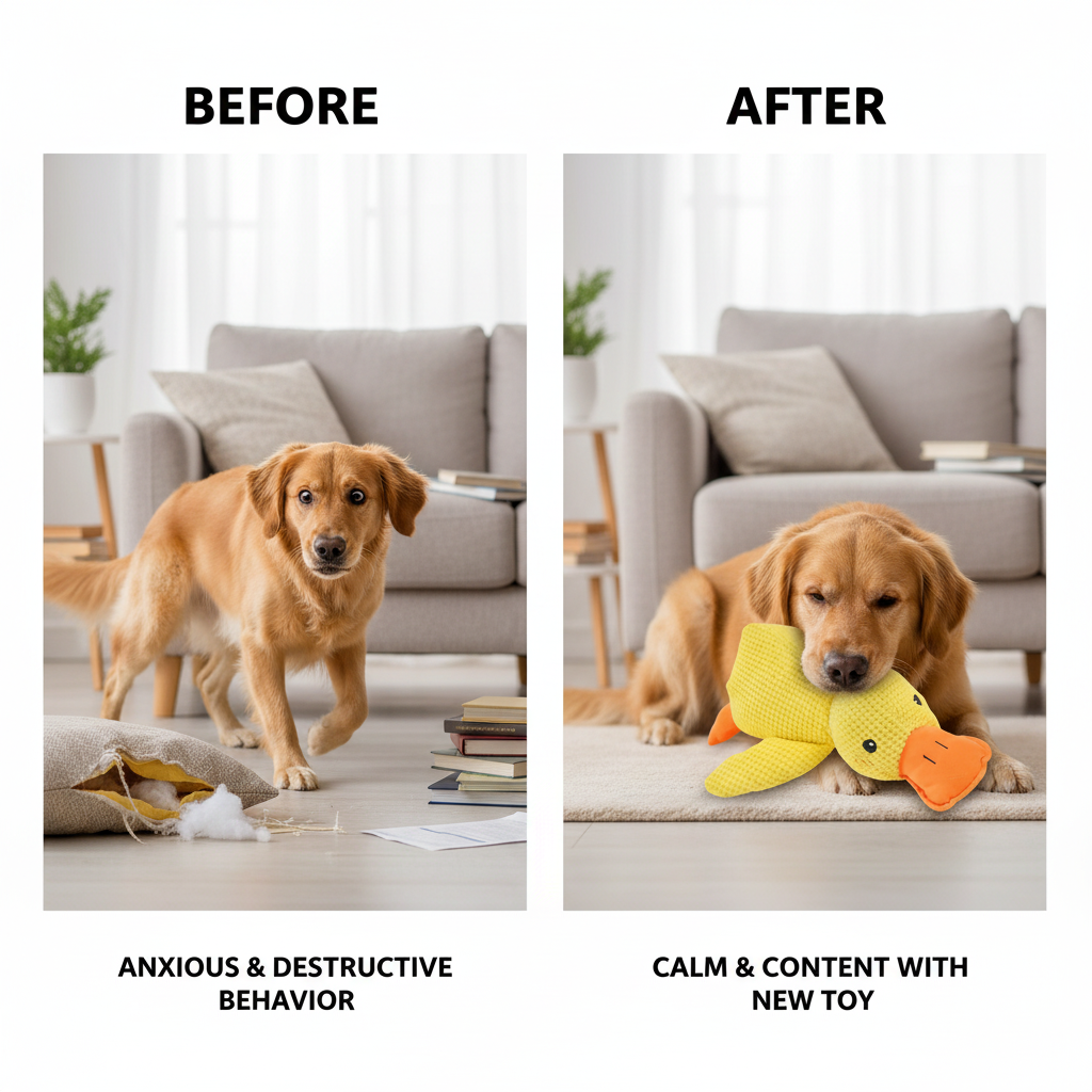 Transform anxious energy into focused play. Our duck toy engages, calms, and entertains while building your dog's mental strength naturally.