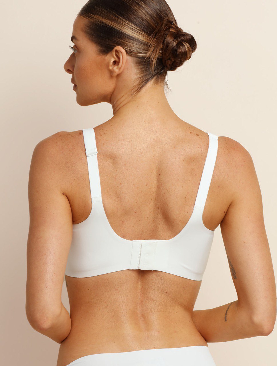 Nada es más molesto! Hemos integrado una banda de soporte ancha bajo el busto con una textura ligeramente adherente (pero suave) que evita que el sujetador se suba al levantar los brazos. Se mantiene en su lugar todo el día.